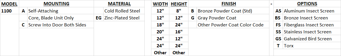 Construction: 1-1/2″ depth louvers are riveted to the operating bar and frame at 1″ intervals on the welded frame.