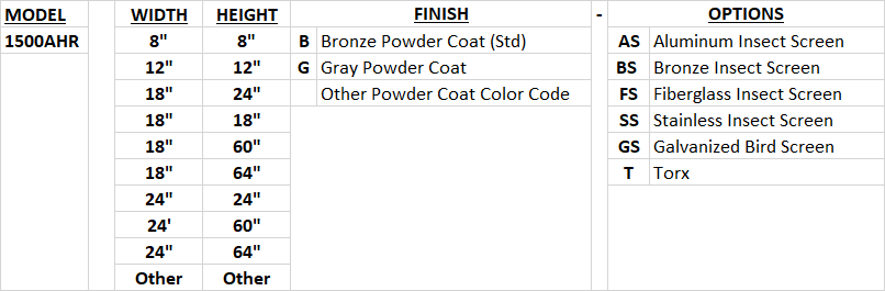 Construction: Louvers are mechanically attached to the sturdy welded frame. Security grilles with 13/16″ square openings are welded to both sides of the louver.