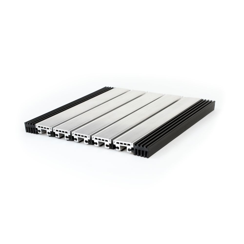 Material:6063-T6 extruded aluminum alloy tread rails and frames.