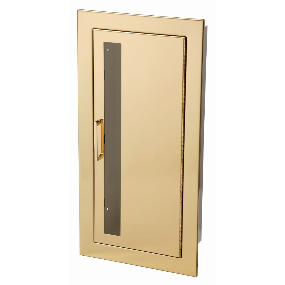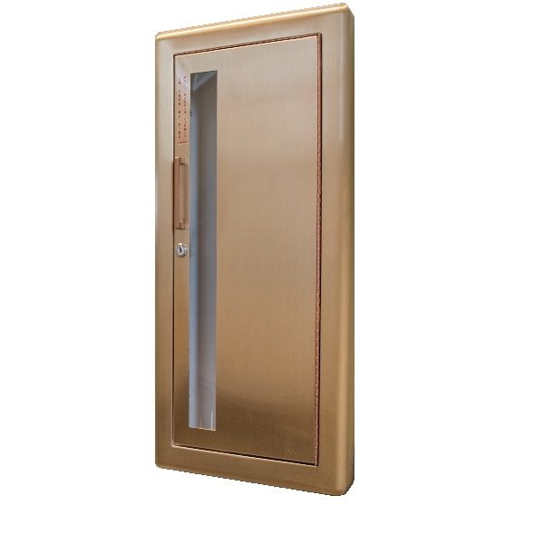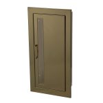 Door and Trim Construction: Cabinets are available in US 10 satin bronze, US10B oil-rubbed bronze or US 3 polished brass. Flush cabinet doors with a 5/8″ door stop are attached by a continuous hinge and equipped with a pull of matching finish, and roller catch. All models have 1-3/4” wide trim on frame and 1-1/4 trim on doors with glazing.