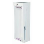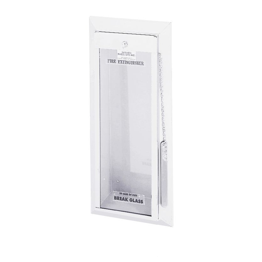 Construction: White powder-coated galvannealed steel or .040” aluminum for rust-resistance. Toploading .060 acrylic front protects the extinguisher. Twin Top Lock with cylinder lock secures glazing against theft, weather and dust. Includes breaker bar with chain.