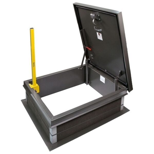 The EZ-UP LP-6 ladder post provides easy and safe access through a roof hatch. The assembly permanently mounts to the roof hatch and acts as an extension to the ladder to enable users to safely enter and exit a roof access hatch. This ladder post folds down into the curb when not in use and can be raised and lowered with one hand.