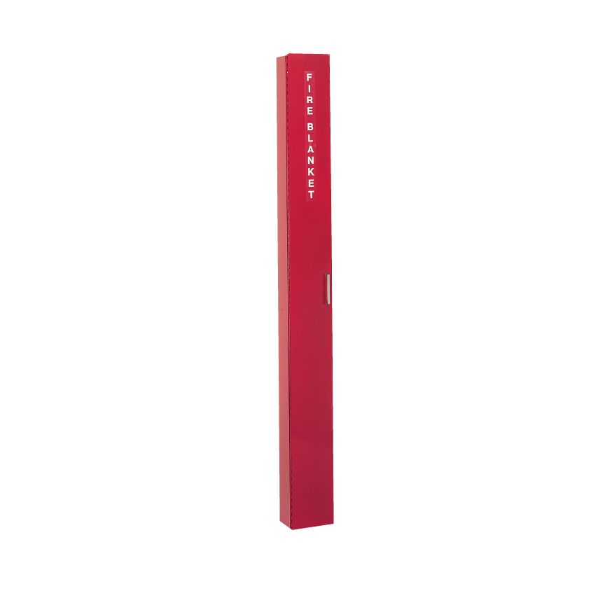 Model 9519S21 is a roller-type blanket cabinet for emergency use. The enclosed blanket is attached to the vertical roller and comes with arm loops to enable a person to wrap themselves in the blanket in one continuous motion.