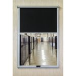 Roller: Spring-operated roller In an aluminum housing with black plastic end caps. A black plastic push-button latch releases the shade to retract into the roller housing.